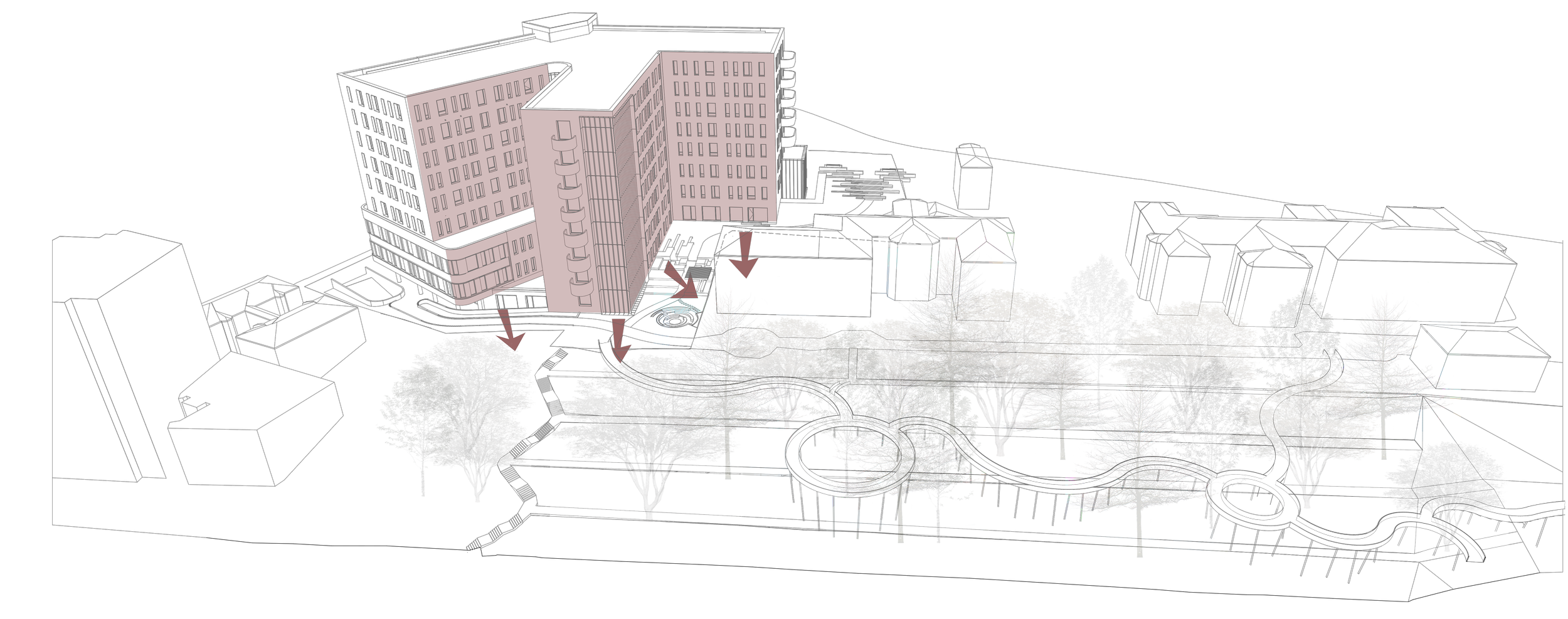 De asemenea se dorește realizarea unei amenajări sustenabile și funcționale a spațiului verde din curtea Centrului, care să fie atractivă si să satisfacă în același timp nevoile tuturor utilizatorilor ( cadre medicale, pacienți, vizitatori, etc.). Mai mult decât atât, propunerea de amenajare urmărește dezvoltarea unei infrastructuri rutiere locale care să faciliteze circulația și accesul ambulanțelor.